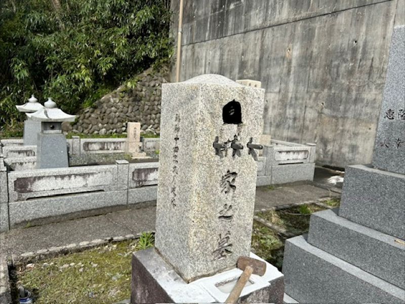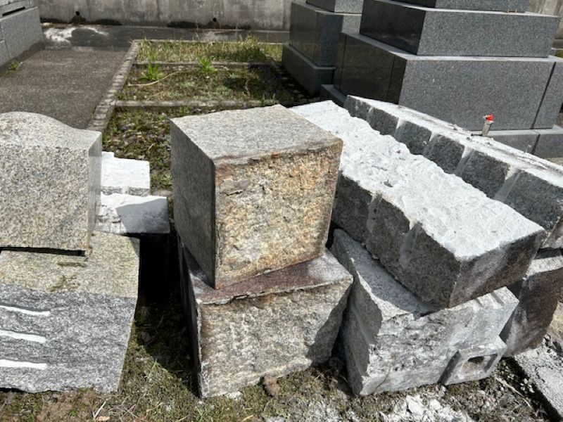 今回の墓終い工事は機械の入らない墓所のため、手作業で小割にして